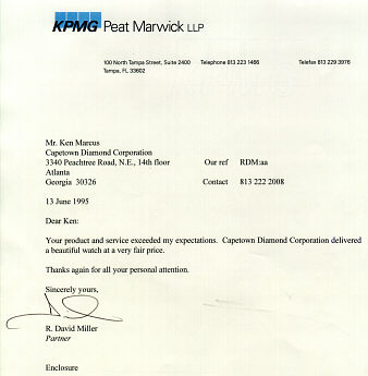 Your product and service exceeded my expectations. Capetown Diamond Corporation delivered a beautiful watch at a very fair price.