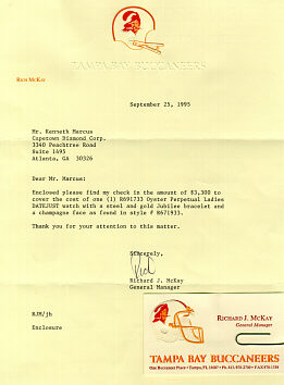 ![]() | September 25, 1995 Dear Mr. Marcus: Enclosed please find my check in the amount of $3,300 to cover the cost of one (1) R691733 Oyster Perpetual Ladies DATEJUST watch with a steel and gold Jubilee bracelet and a champagne face as found in style # R671933. Thank you for your attention to this matter. Sincerely,