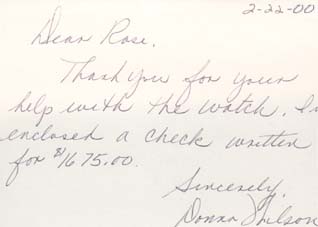 Thank you for your help with the watch. I've enclosed a check written for $1,675.